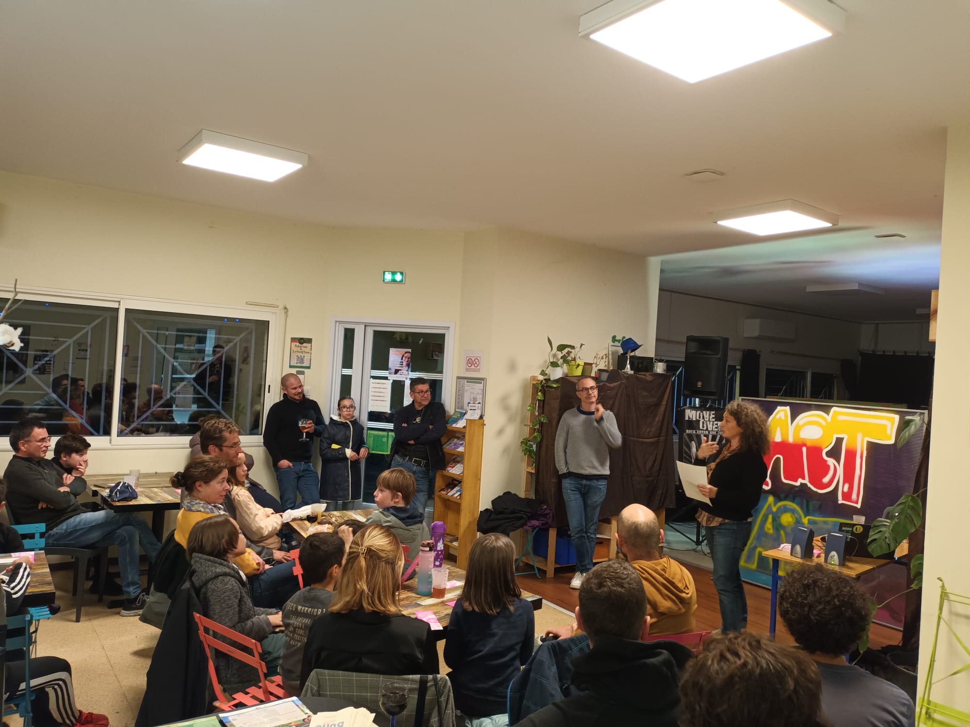 De cette démarche est né un collectif d’habitants, moteur du projet. Grâce à cette mobilisation citoyenne, le café associatif a ouvert ses portes le 11 mars 2023. Depuis, la démarche est maintenue, dans un esprit d’ouverture, d’adaptation continue et de soutien aux initiatives locales. Le lieu fonctionne comme un espace vivant de rencontre, d’échange, de diffusion culturelle et d’accompagnement de projets, au service du territoire.