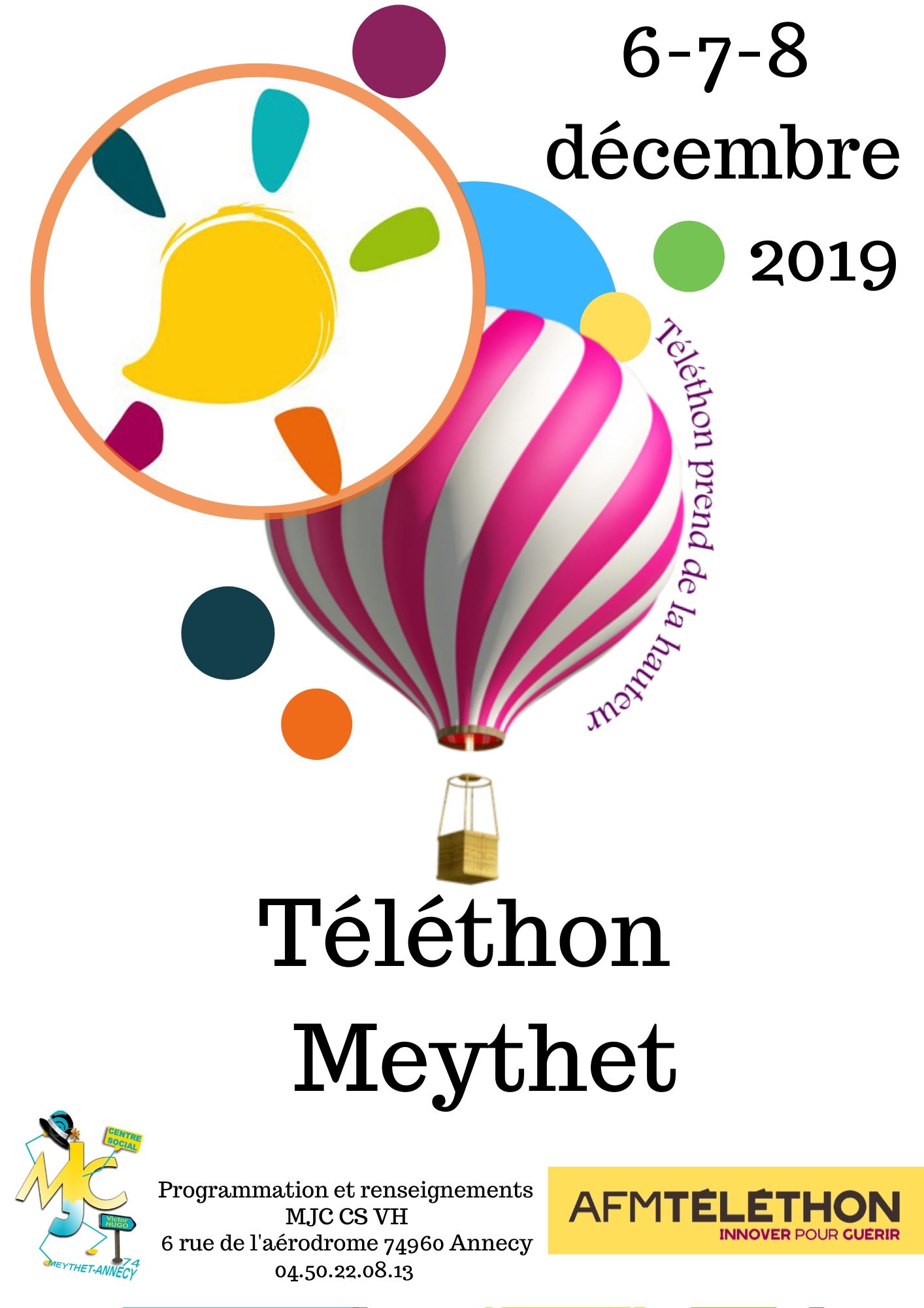 - organisation d'un village de téléthon devant le parvis de la mairie annexe de Meythet où des animations musicales, de danse, de magie animent la place pendant que des stands de vente d'objets, buvette et toboggan géants font le plaisirs des passants.